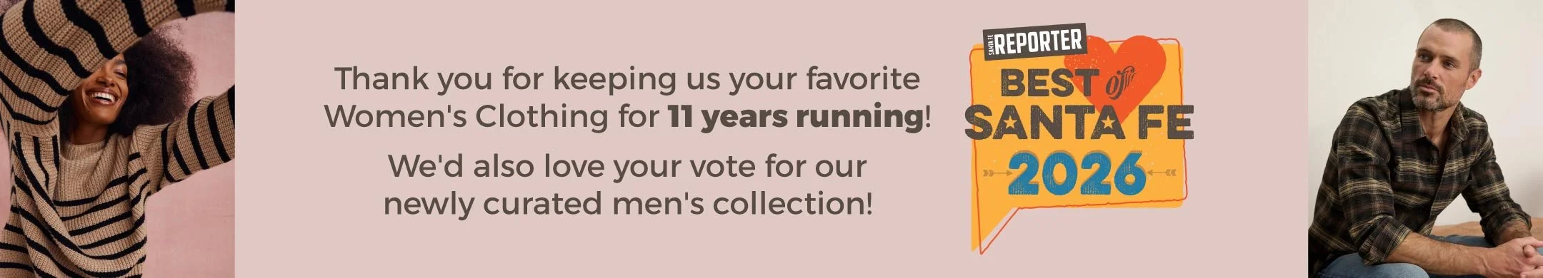 Don't just take our word for it - we've placed Best Women's Clothing Store in The Reporter's Best of Santa Fe poll for eleven consecutive years. (But who's counting?)
